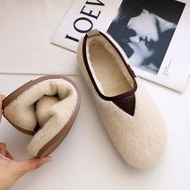 여성용 복실복실 발등 리본 금장 장식 벨벳 겨울 단화