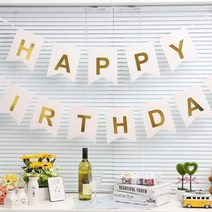 스투피드 해피 벌스데이 골드글자 가랜드 (2줄) 화이트_(301…, 단품