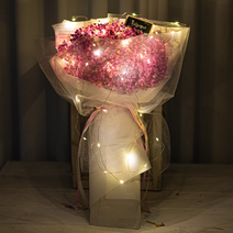 “1000일 동안” 시들지 않는 보존화 안개꽃다발 (LED+엽서+꽃다발)라운드오프, 중형, 핑크