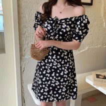 하나넬 여자 예쁜 데이지 꽃 무늬 퍼프 오프숄더 미니 원피스 hananel520