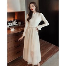 프리티원 미벤두넬 브이넥 밴딩 기모 긴팔 원피스
