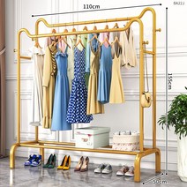 스텐행거 금색 옷걸이 행거 럭셔리 모자 랙 실내 수납 선반 가정용 가방보관, K 110cm골드)더블바가을과겨울)80-100kg