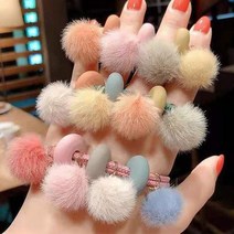 밍크퍼 폼폼이와 마카롱컬러빈의 콜라보 핸드메이드 헤어로프 5컬러 머리끈 연예인헤어끈 아이유머리고무줄 제니헤어끈